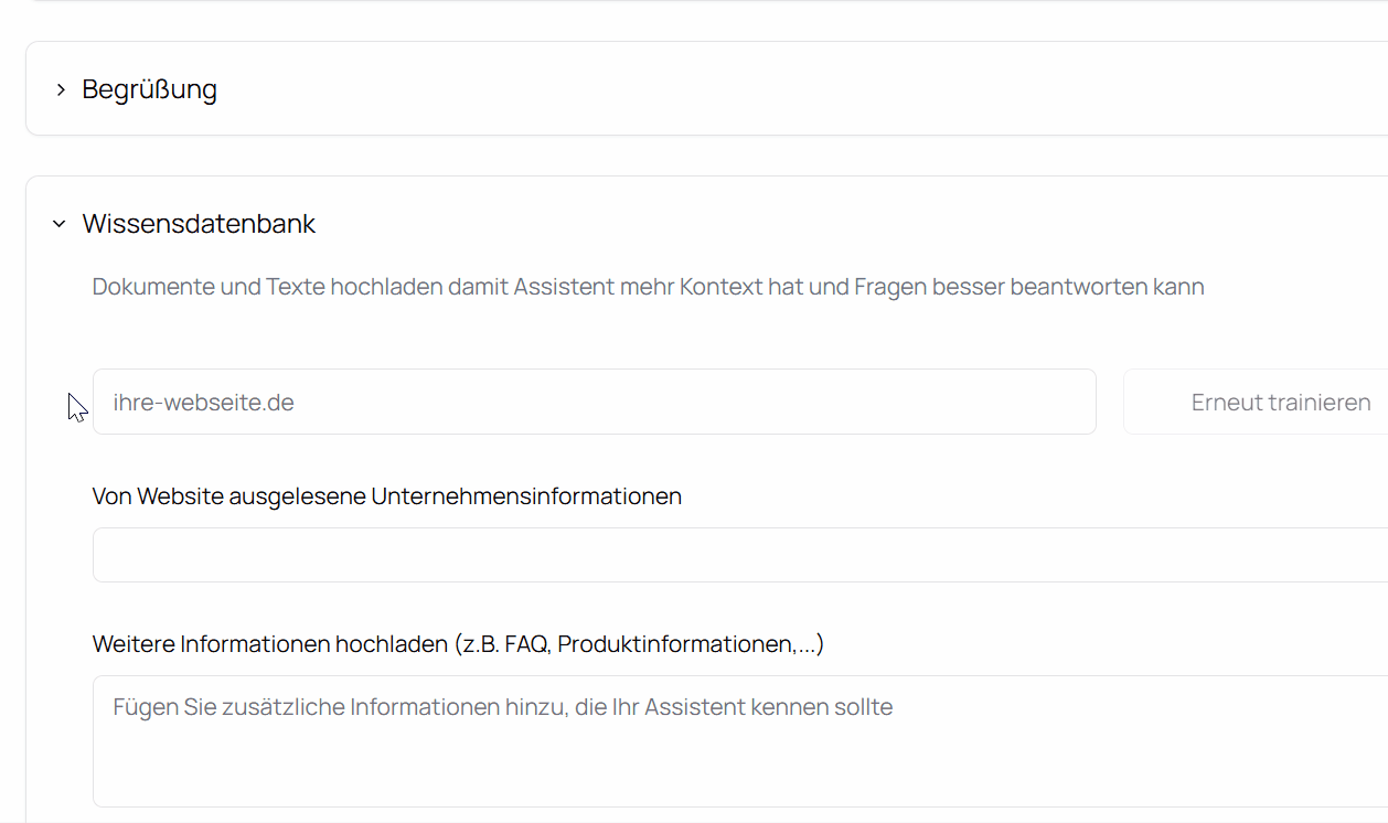 Assistent erfasst automatisch alle relevanten Informationen Ihrer Webseite und nutzt sie in seinen Antworten.